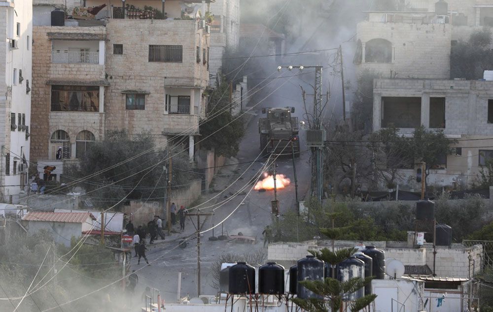 3月7日,在以色列军队进入杰宁难民营开展搜捕行动期间,炸药在以色列车辆附近爆炸。(图片来源:新华社)