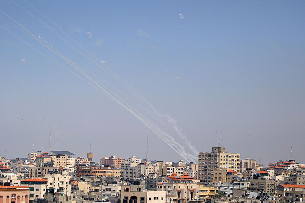 这是5月10日在加沙城拍摄的从加沙地带射向以色列的火箭弹。(图片来源:新华社)