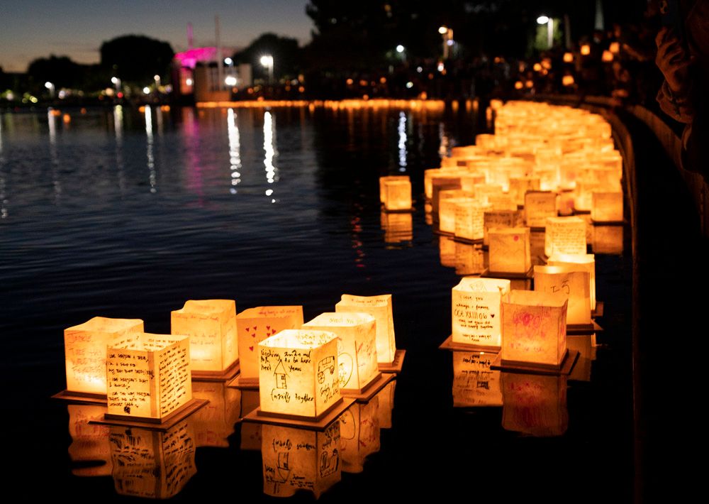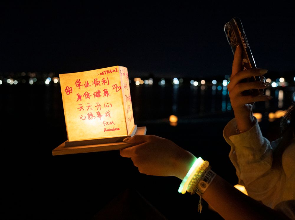 10月8日,美国加州旧金山湾区福斯特城举行水灯节,民众通过放水灯表达美好祝愿。
