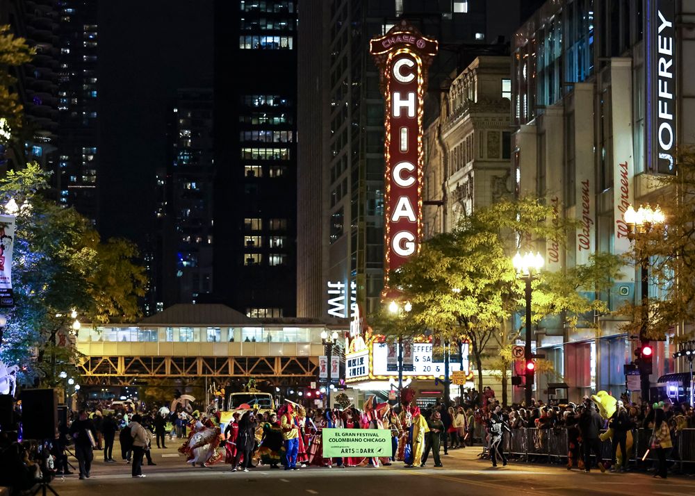 10月21日,美国芝加哥举行名为“黑暗中的艺术”的万圣节游行。