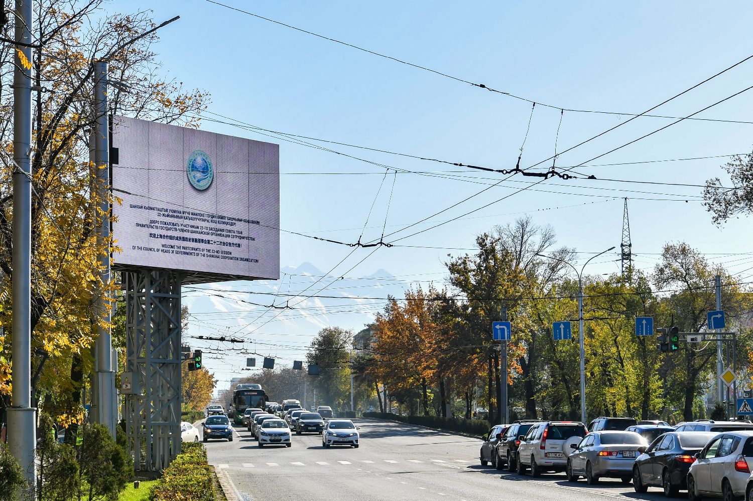 这是10月25日在吉尔吉斯斯坦首都比什凯克拍摄的上合组织标语。(图片来源:本文图片均自新华社)
