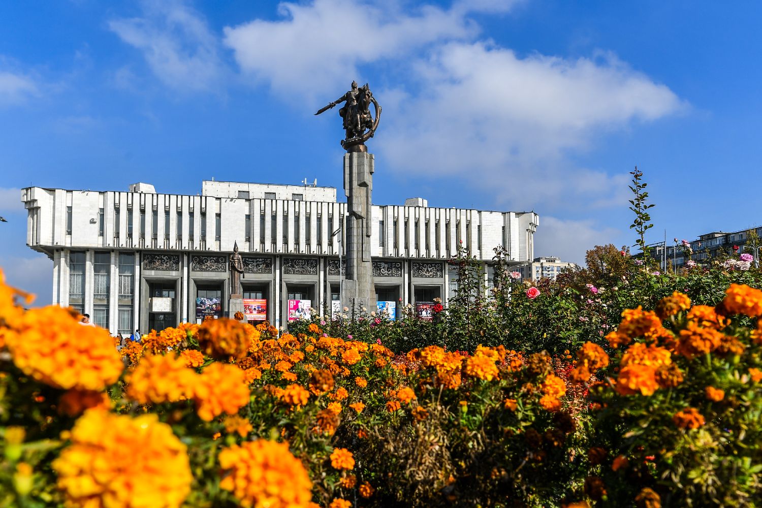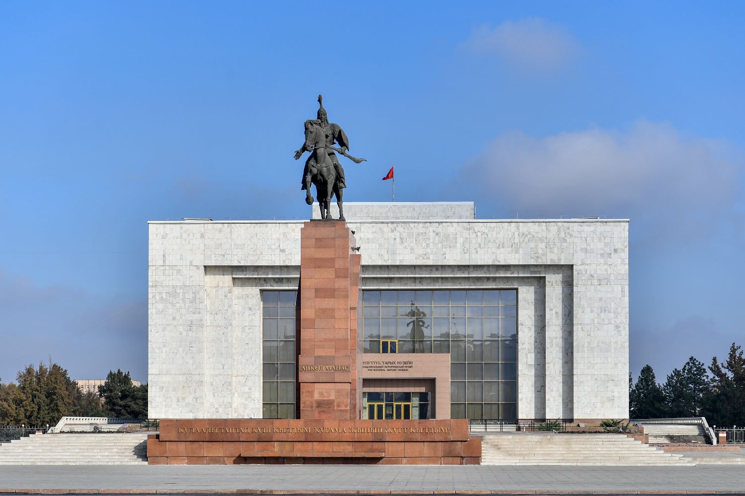 这是10月24日在吉尔吉斯斯坦首都比什凯克拍摄的国家音乐厅。
