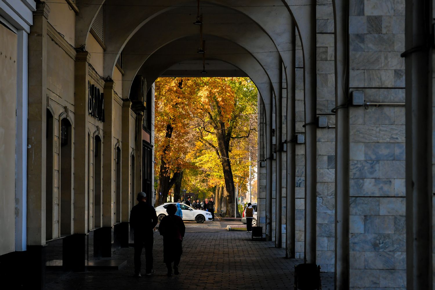 这是10月24日在吉尔吉斯斯坦首都比什凯克拍摄的街景。