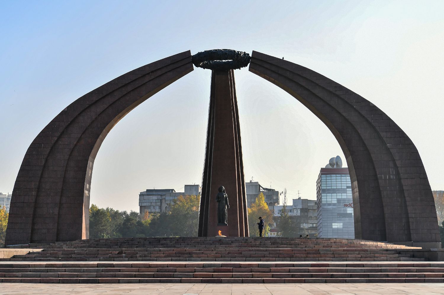 这是10月24日在吉尔吉斯斯坦首都比什凯克拍摄的胜利广场。