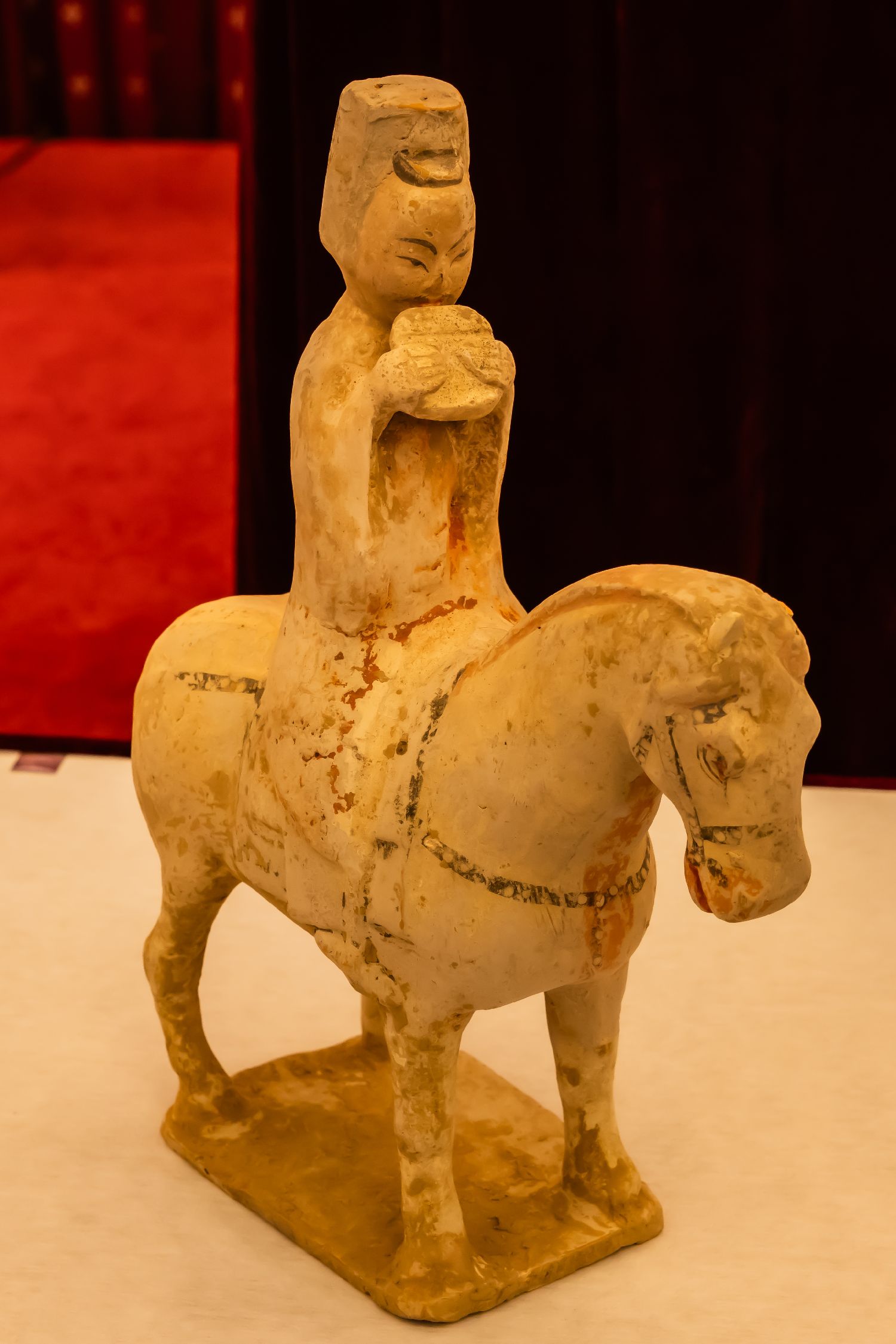 10月25日,在澳大利亚首都堪培拉,中国驻澳大利亚大使馆展示澳返还的北朝至唐彩绘陶制人物骑马俑。