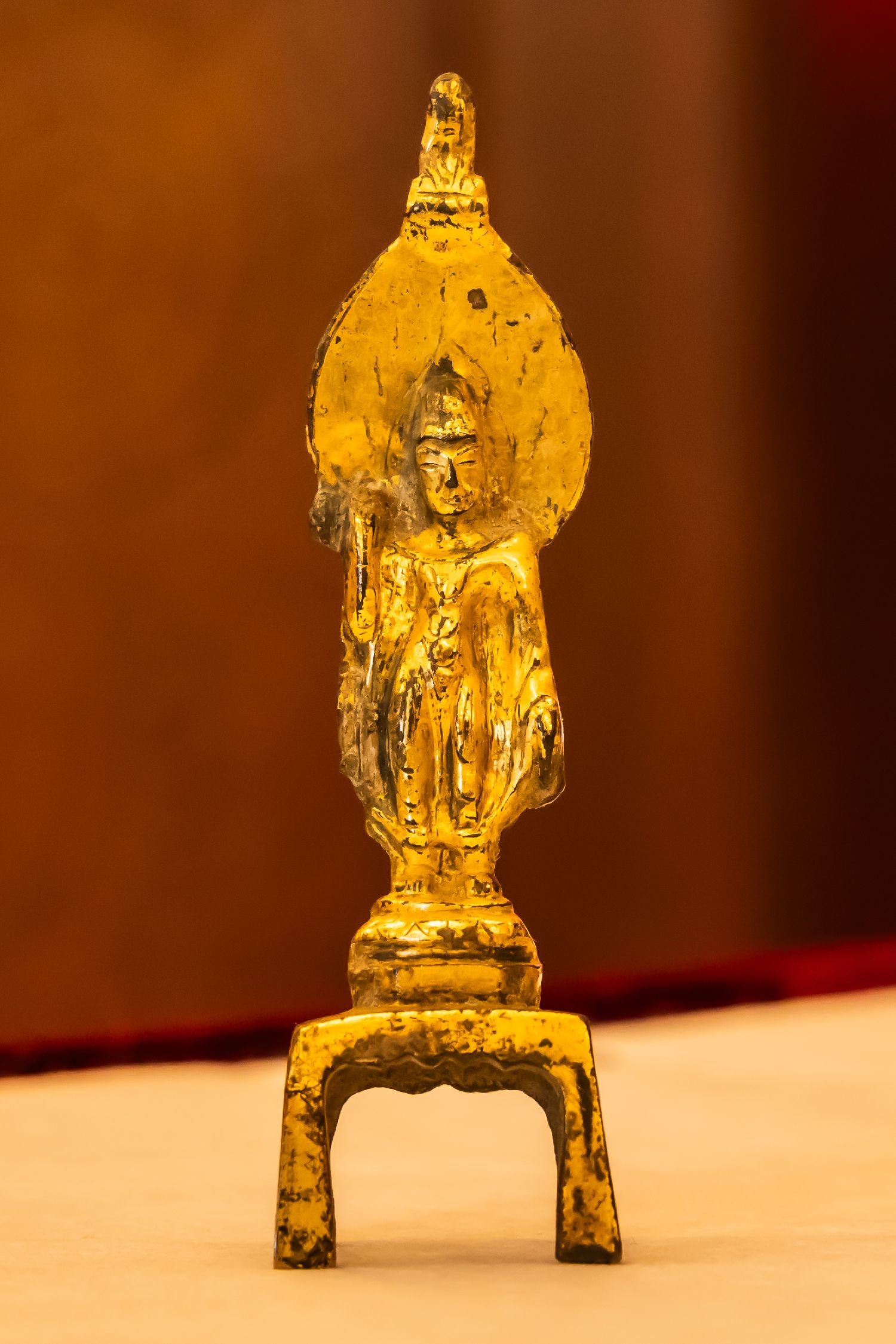 10月25日,在澳大利亚首都堪培拉,中国驻澳大利亚大使馆展示澳返还的隋晚期至唐铜鎏金佛立像。
