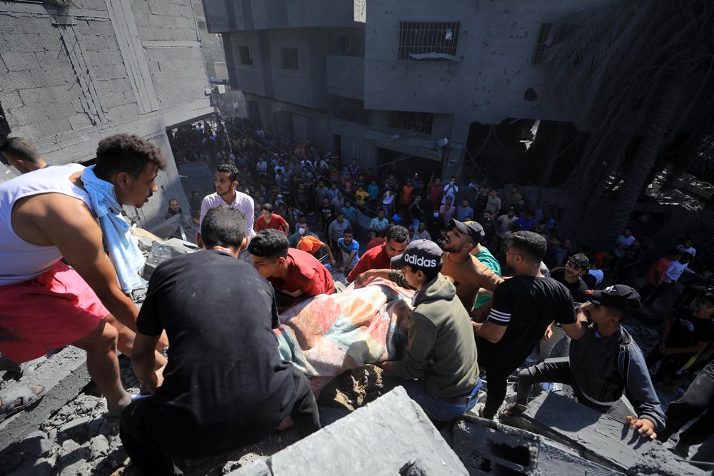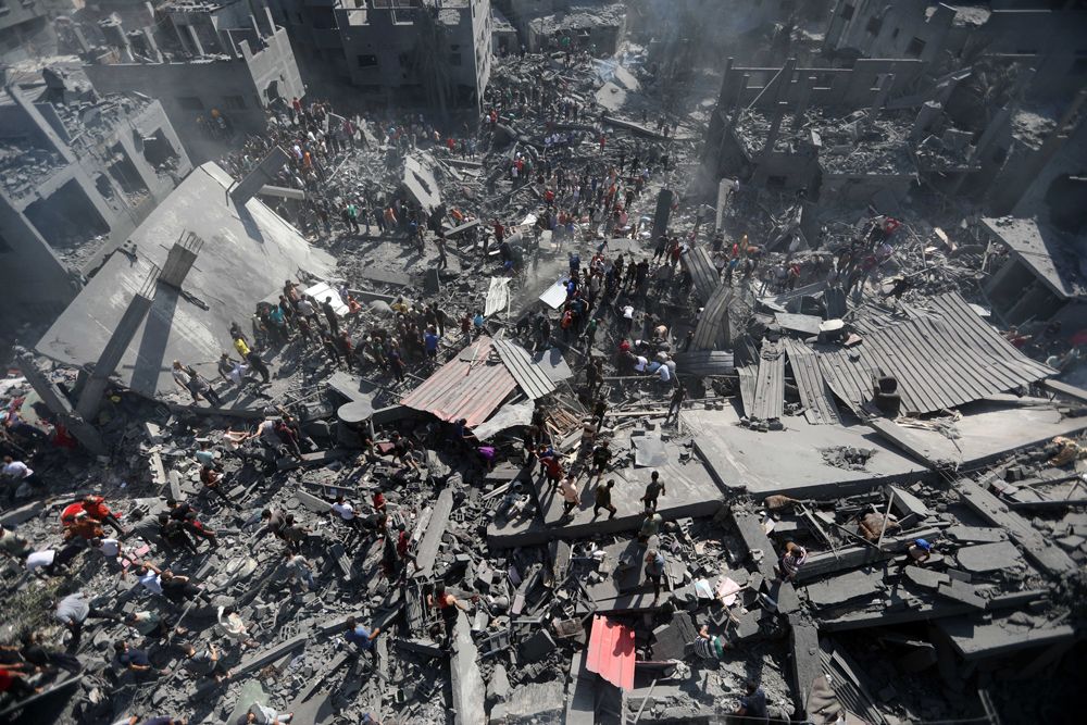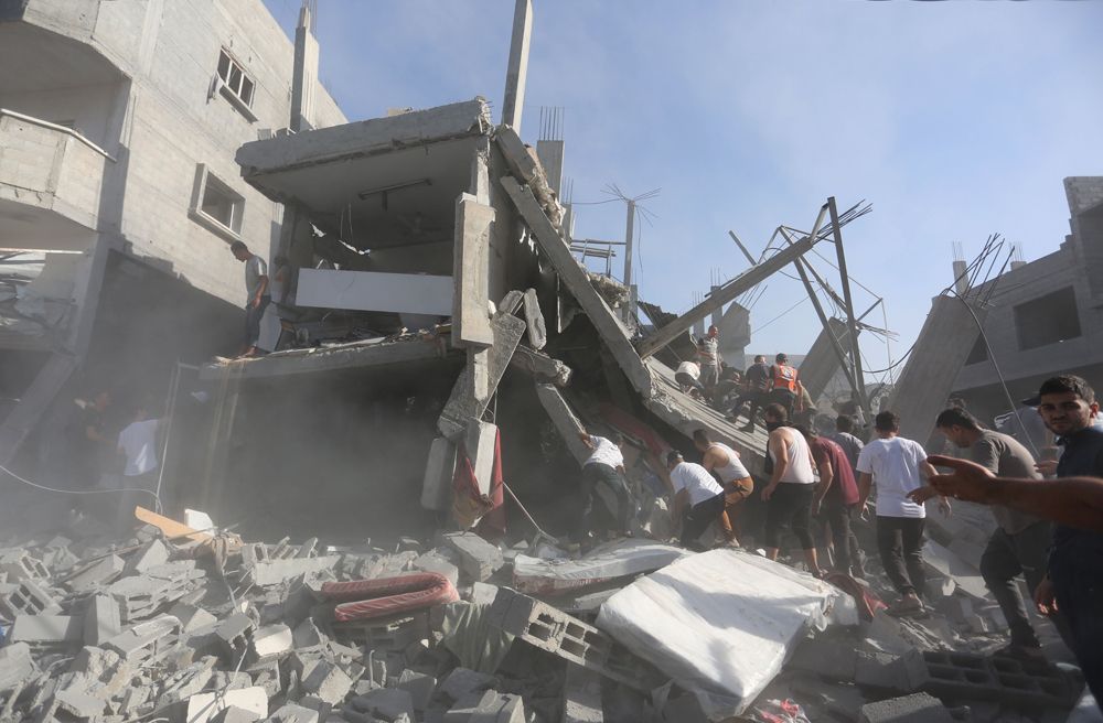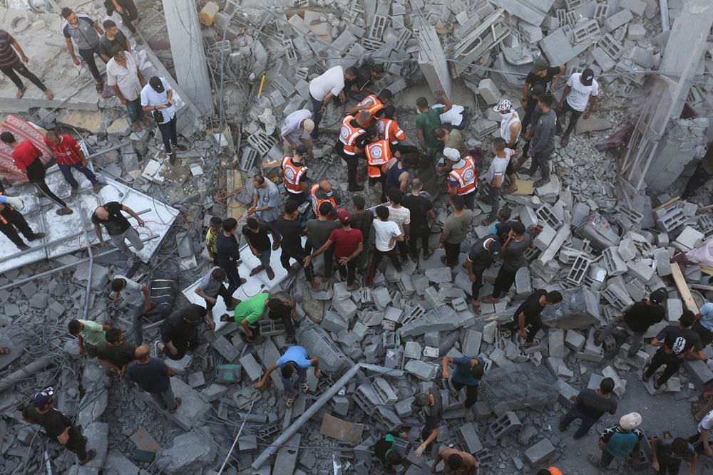以色列卫生部数据显示,本轮冲突已导致以方1400多人死亡。图为10月26日,民众在加沙地带南部城市汗尤尼斯的废墟中搜救。