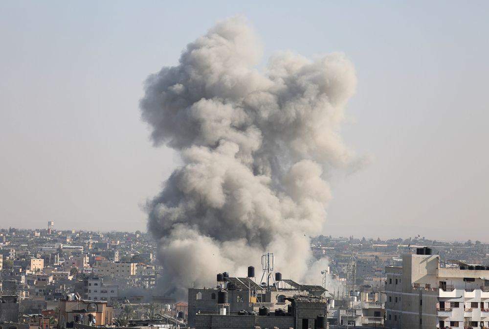 10月26日,以色列空袭造成的浓烟从加沙地带城市拉法城中升起。