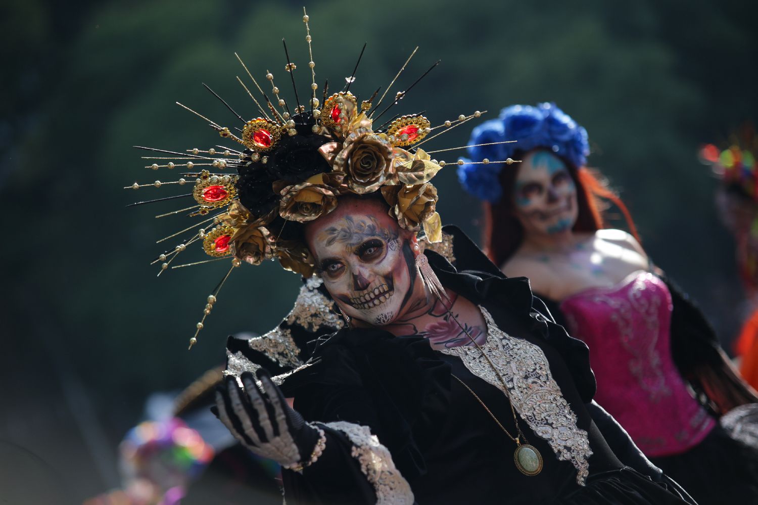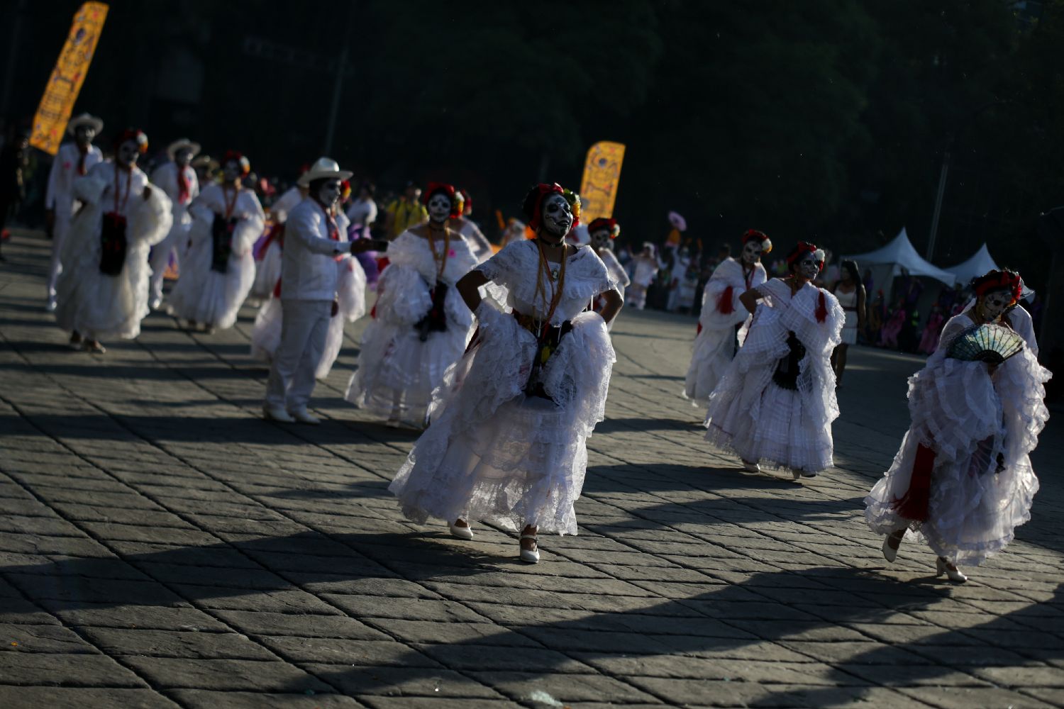 11月4日,在墨西哥首都墨西哥城,演员参加亡灵节游行。
