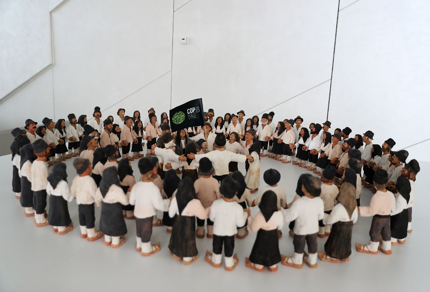 这是11月29日在阿联酋迪拜拍摄的联合国气候变化大会举办地迪拜“世博城”内的一处人偶艺术作品。