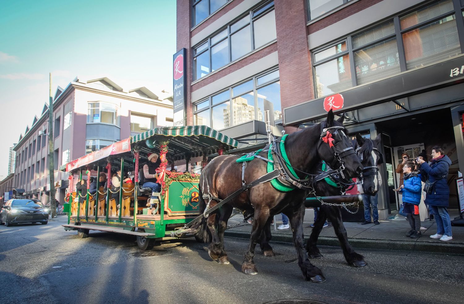 12月2日,人们在加拿大温哥华举办的“糖果镇”活动上体验乘坐马车。(图片来源:本文图片均据新华社)