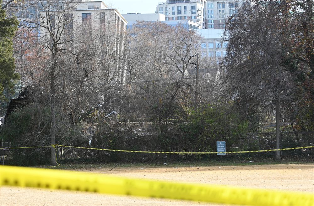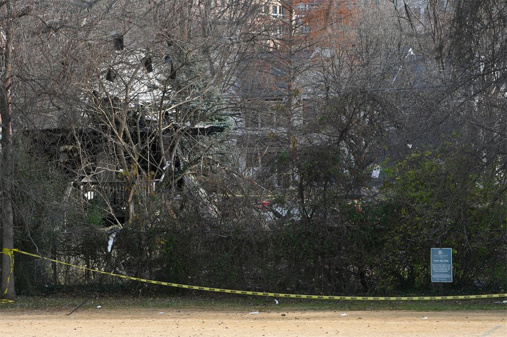 当地时间12月4日,美国弗吉尼亚州阿灵顿县一处二层住宅在警方搜捕时发生爆炸,整座建筑瞬时被炸毁。图为5日拍摄的案发现场。(图片来源:中新社)