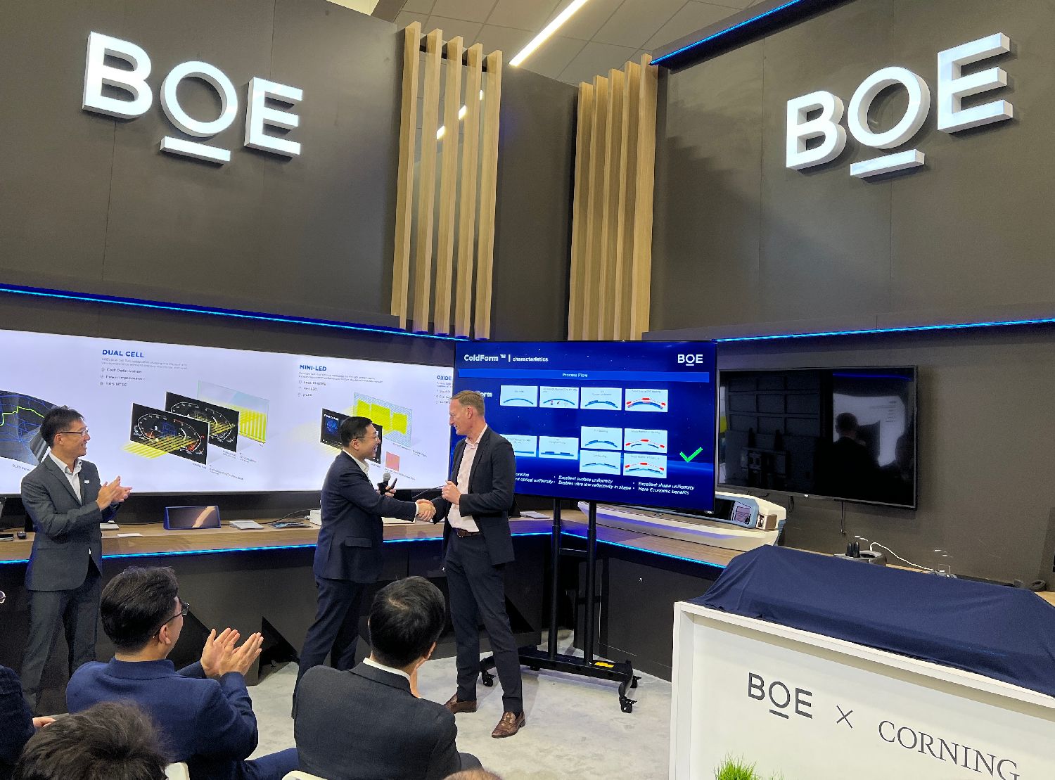 中国企业京东方与美国康宁公司共同举办以“智慧显示,绿色出行”为主题的新品发布活动。
