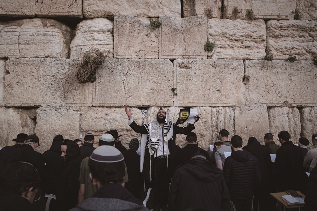 10日,在耶路撒冷老城西墙,民众参加祈祷和祝福活动。祈愿仍被扣留在加沙地带的以色列人员早日获释。(图片来源:新华社)