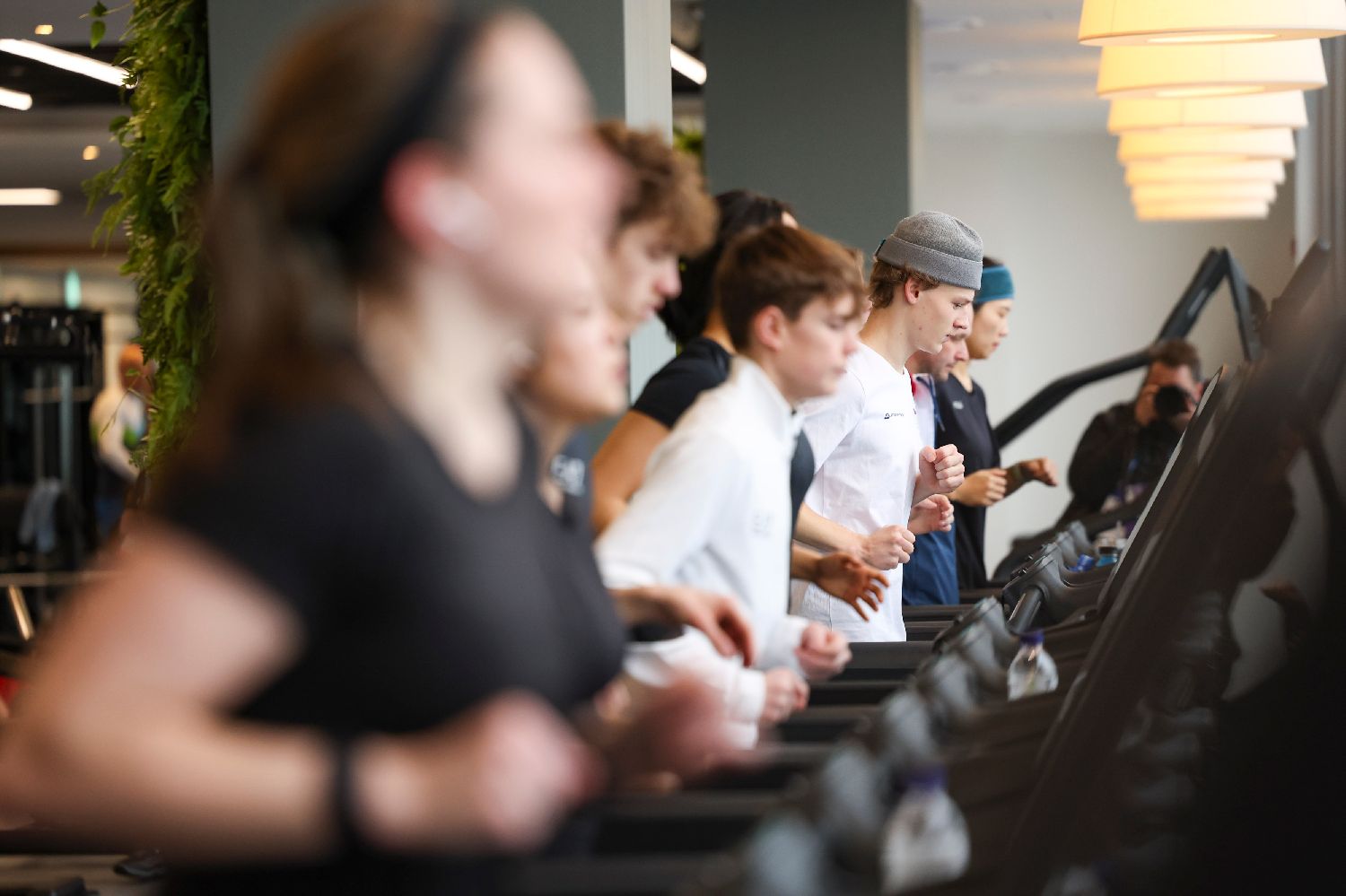 1月18日,运动员在冬青奥村多功能健身中心跑步。