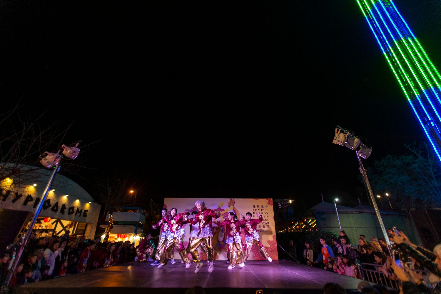 图为2月10日,演员在希腊雅典最大的室外游乐场欢乐公园举行的中国春节活动上表演。(图片来源:新华社)