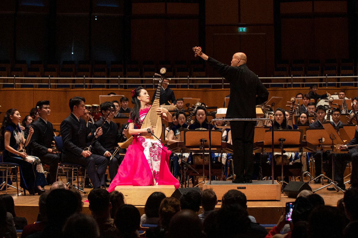 图为2月10日,在德国杜塞尔多夫市音乐厅,中央民族乐团团长赵聪与乐团共同演奏曲目《冬至·福吉天长》。当日,“中国春节民族音乐会”在德国杜塞尔多夫市音乐厅举行,这是中国中央民族乐团《天地永乐·中国节》春节欧洲巡演龙年的第一场演出。琵琶、胡琴、二胡、笛子奏响在莱茵河畔,现场观众沉醉在中国民乐中。(图片来源:新华社)