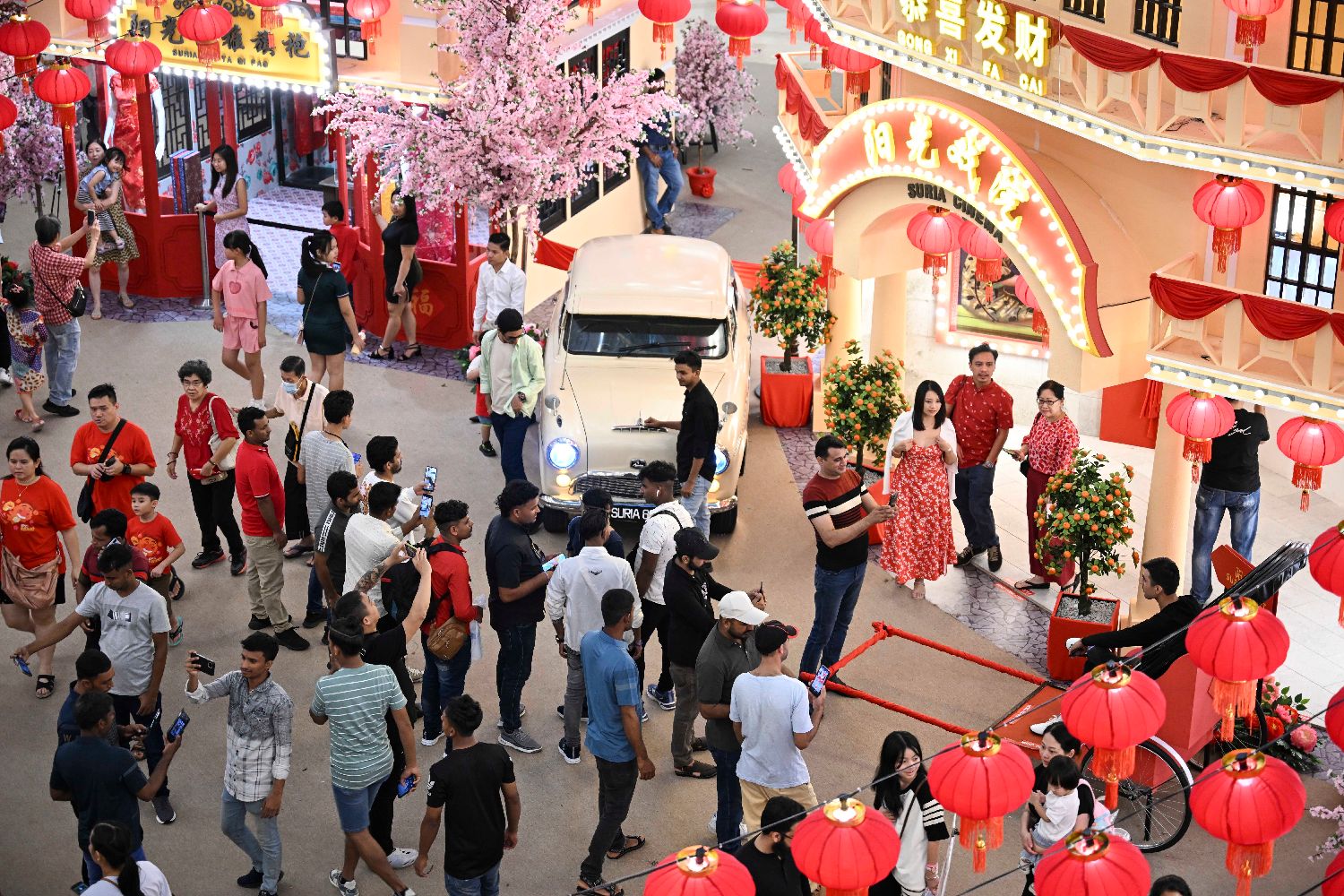 图为2月10日在马来西亚吉隆坡拍摄的春节特色布景。当日,马来西亚吉隆坡大街小巷热闹非凡,市民纷纷走出家门庆祝农历新年的到来。(图片来源:新华社)
