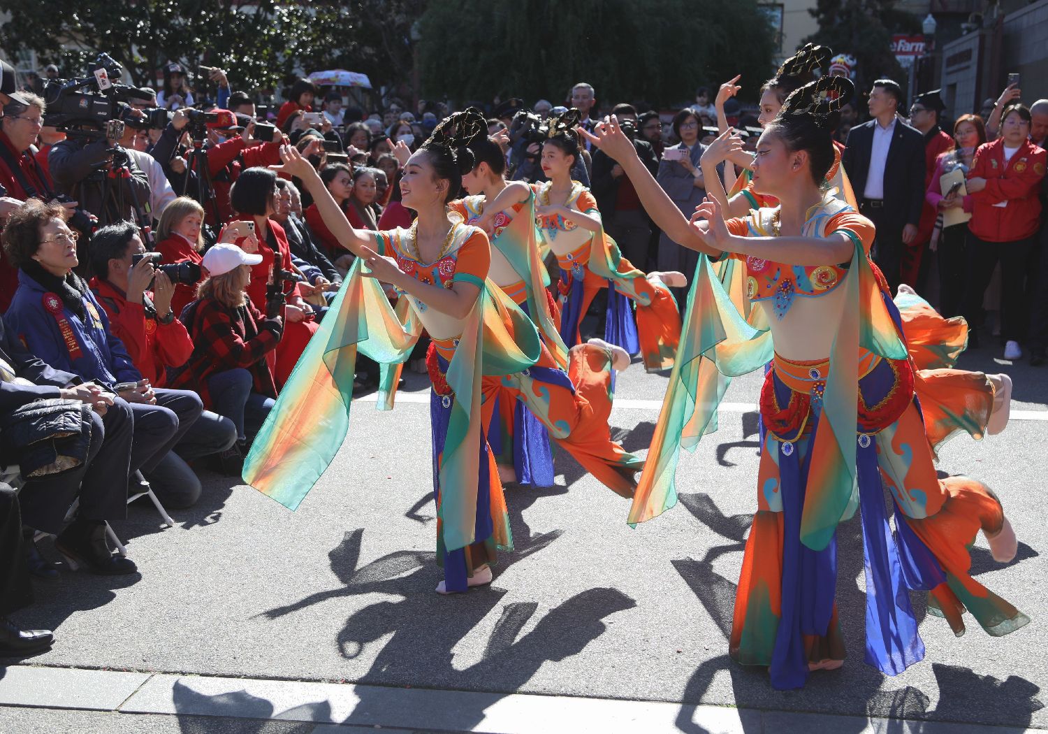 图为2月10日,在美国旧金山唐人街,旧金山华星艺术团演员在龙年春节庆祝活动上表演。(图片来源:新华社)