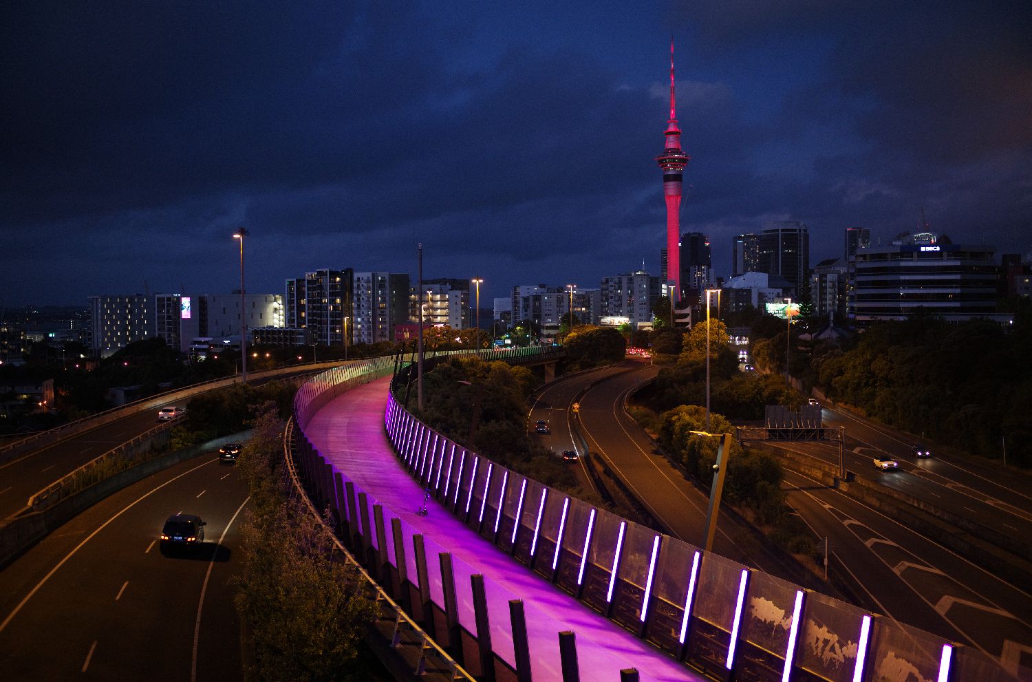 图为2月10日,新西兰奥克兰的地标建筑天空塔为迎中国农历新年点亮“中国红”。(图片来源:新华社)