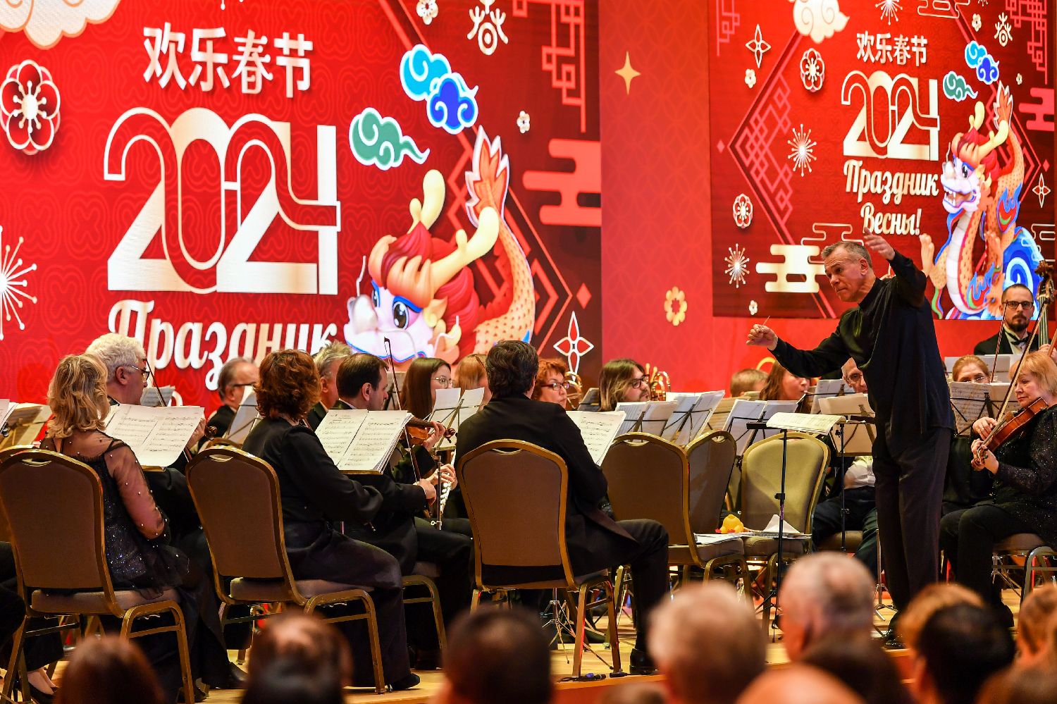 图为2月10日,在俄罗斯首都莫斯科,音乐家们在新春音乐会上表演。当日,一场以“欢乐春节”为主题的新春音乐会在俄罗斯首都莫斯科上演。(图片来源:新华社)