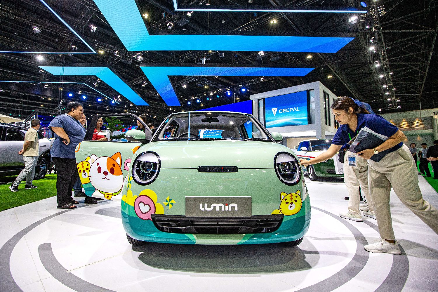 3月27日,观众在泰国曼谷国际车展上参观长安Lumin汽车。