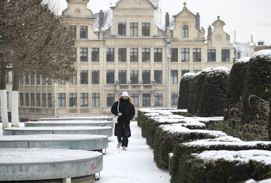 2月8日,一名行人在比利时布鲁塞尔出行。