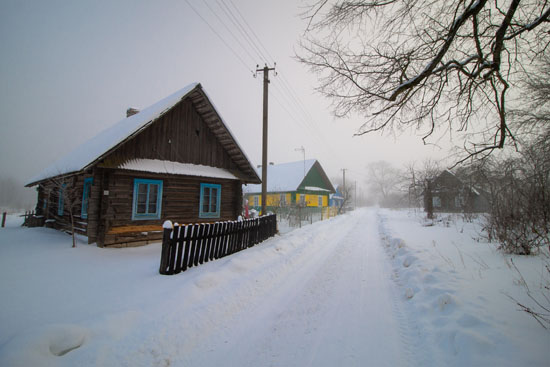 图为2月7日在白俄罗斯纳利博基森林中一处村庄拍摄的雪景。