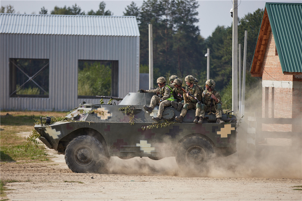 2020年9月17日,乌克兰士兵参加在乌克兰西部利沃夫州举行的代号为“快速三叉戟-2020”的多国联合军事演习。(图片来源:新华社)
