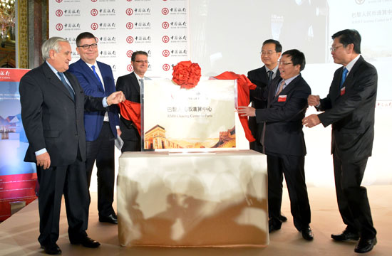 2014年12月3日,中国银行在法国巴黎举行“巴黎人民币清算行服务启动仪式”。(图片来源:中新社)