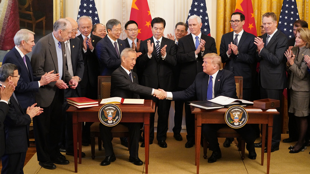 2020年1月15日,中美第一阶段经贸协议签署仪式在华盛顿举行。(图片来源:新华社)
