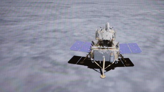 12月1日23时11分,嫦娥五号探测器成功着陆在月球正面西经51.8度、北纬43.1度附近的预选着陆区,并传回着陆影像图。图为嫦娥五号探测器着上组合体太阳能帆板打开示意图。(图片来源:中新网)