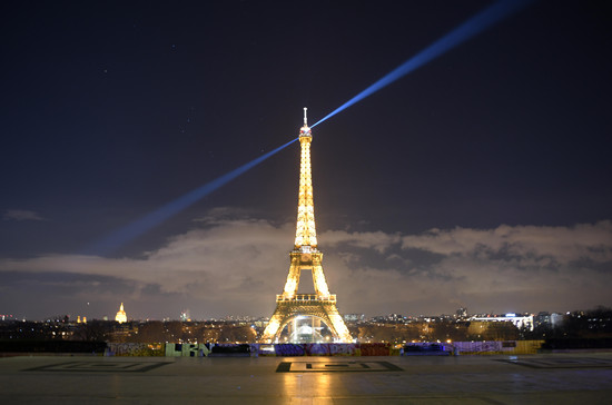 12月31日晚,法国在跨年夜严格实施宵禁,以应对新冠肺炎疫情。图为巴黎市中心埃菲尔铁塔。