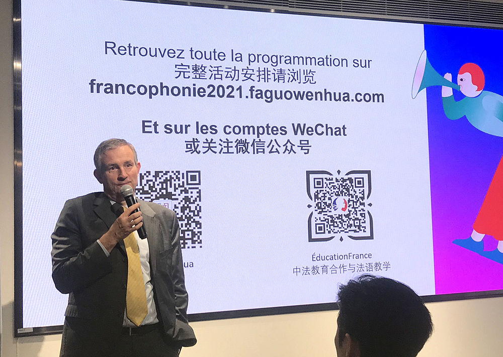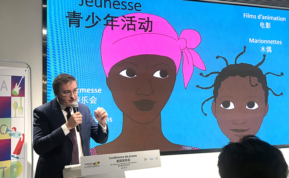 他指出,今年法语活动月活动将通过不同主题板块展示,邀请艺术家、学者和科学家们分享技艺,同时也邀请法语教师和学生们各施才华,使丰富多彩的文化艺术活动借助法语展开,通过一系列电影、展览和见面会等活动来共同感受法语国家与地区的语言、文化、历史遗产和自然风貌。
