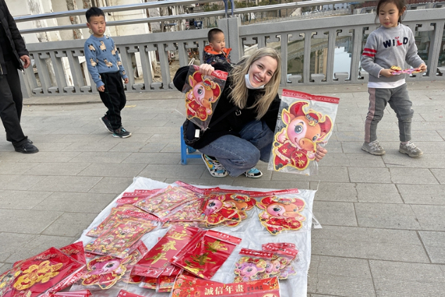 瑞丽介绍,大年三十那天,街上到处都是卖对联的摊位,出于好奇,她自己也体验了一把“摆摊”。“我们进了150元(人民币)左右的对联,一早上就去卖,即便最后只卖出一半,但却感觉很有意思。”很多当地县城的人看到摊主是一副外国面孔,惊讶之余,都纷纷给瑞丽点赞。