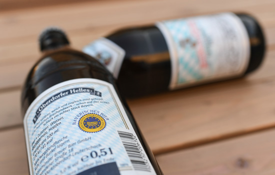 这是3月2日在德国法兰克福拍摄的一款巴伐利亚啤酒瓶身上标注的地理标志。德国的巴伐利亚啤酒是中欧地理标志协定中首批受保护的欧盟地理标志产品。