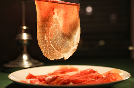 这是3月2日在意大利罗马拍摄的帕尔玛火腿。意大利的帕尔玛火腿是中欧地理标志协定中首批受保护的欧盟地理标志产品。
