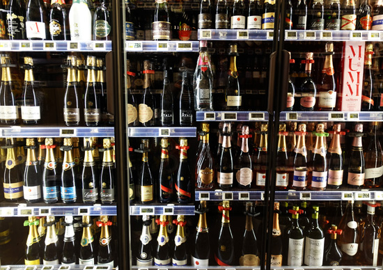 这是3月2日在法国巴黎商店内拍摄的不同品牌的香槟。法国的香槟是中欧地理标志协定中首批受保护的欧盟地理标志产品。(图片来源:本文图片均自新华社)