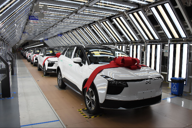 2020年9月23日,江西省上饶经济开发区爱驰超级智慧工厂,举行第二批出口欧盟200台暨2021款欧版U5下线及发运仪式。(图片来源:视觉中国)