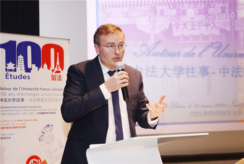 3月26日,法国驻华大使馆文化、教育与科学事务公使衔参赞高明(Mikal HAUTCHAMP)出席活动并致辞。当日,在“中法百年教育交流(2019-2021)”项目框架下,“中法大学往事 ——中法教育交流百年纪念”活动在北京举行。活动现场,《历史上的中法大学(1920-1950)》法文版发布,该书由许睢宁、张文大、端木美合著。