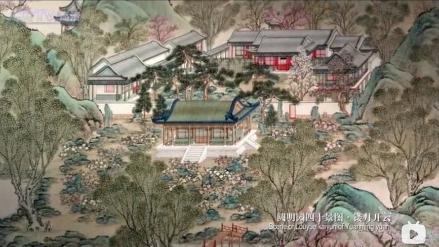 圆明园四十景图之一的镂月开云绘画稿。(图片来源:央视纪录片《圆明园》 截图)