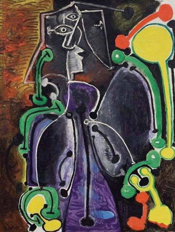 此画绘于1949年,是毕加索为情人弗朗索瓦丝所作。1943年,年已62岁的毕加索认识了21岁的年轻女画家弗朗索瓦丝,并开始长达11年的爱情。二人没有结婚,但育有一儿一女,这幅画即为弗朗索瓦丝身怀女儿帕洛玛时所作。