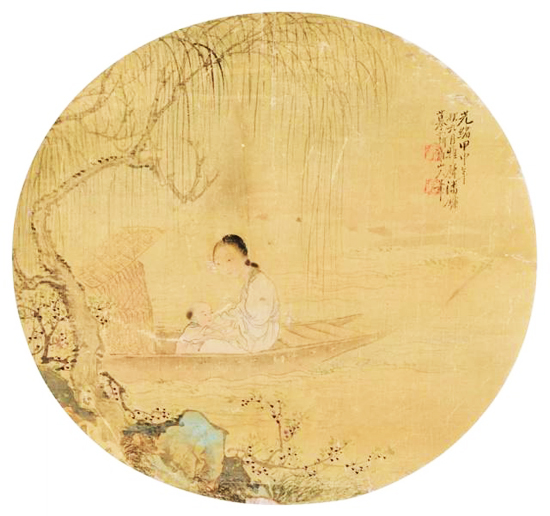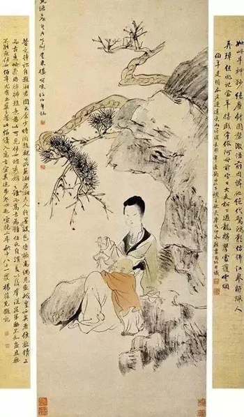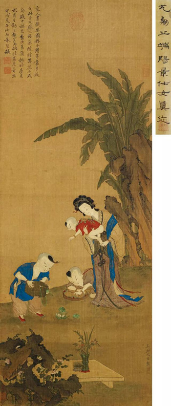陈清波画的《瑶台步月图》就表现了这样的场景。母亲既要照顾婴儿,还要牵挂在院子里玩耍的孩子。
