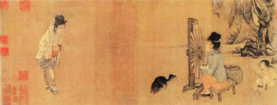 说到纺织,在古代,这可是女性从小就要学习的重要生存技能。一般家庭的女子,就算嫁为人妻,生儿育女,也不能放下手中的纺线。因此,我们才会在王居正画的《纺织图》中,看到妇女一边摇着纺车,怀里还照顾着一个婴孩的场景。看来,工作与家庭的平衡,对女性来说,从古至今都是个难题。