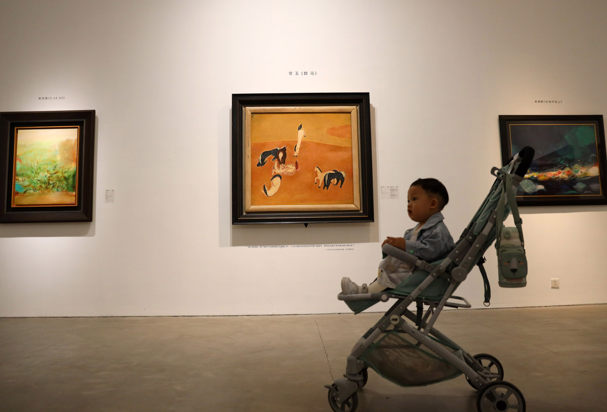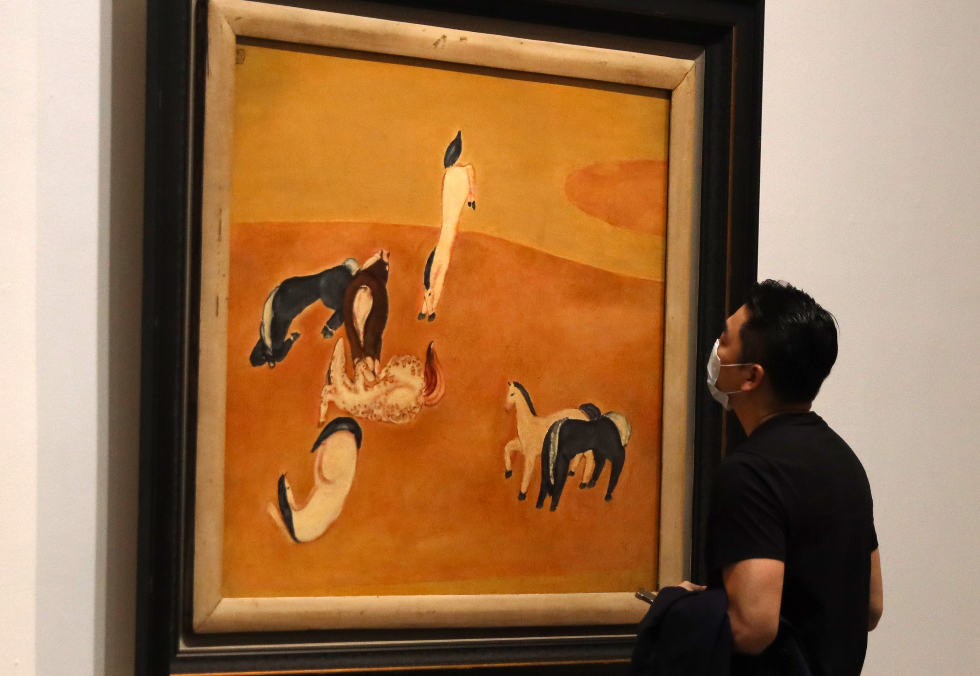 图为2021年5月17日,旅法画家常玉《群马》吸引观众近距离观赏。(图片来源:本文图片均为欧洲时报网特约记者卞戈摄)