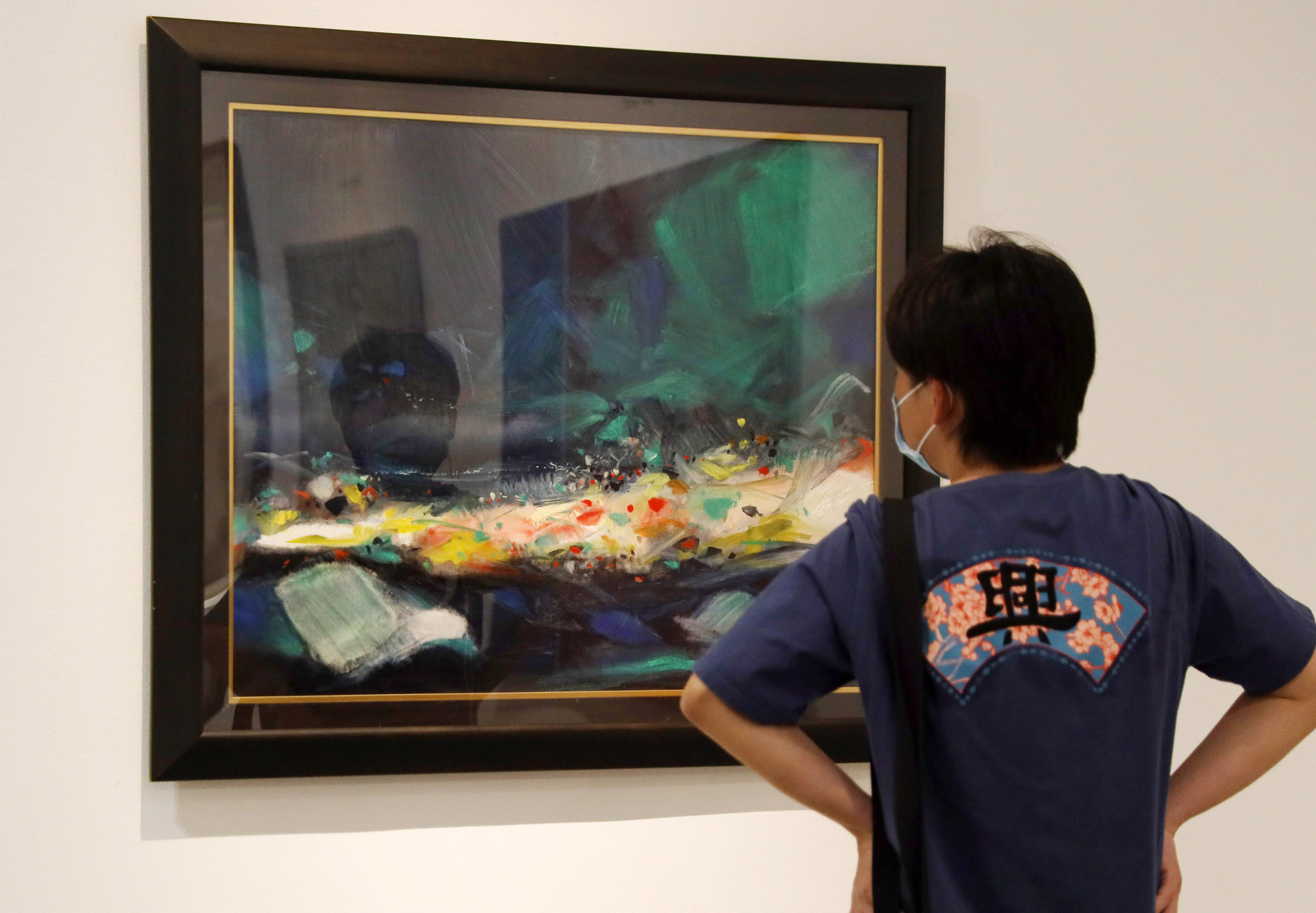 2021年5月17日,观众近距离观赏法籍华裔画家朱德群于2005年创作的《在地平线上》。