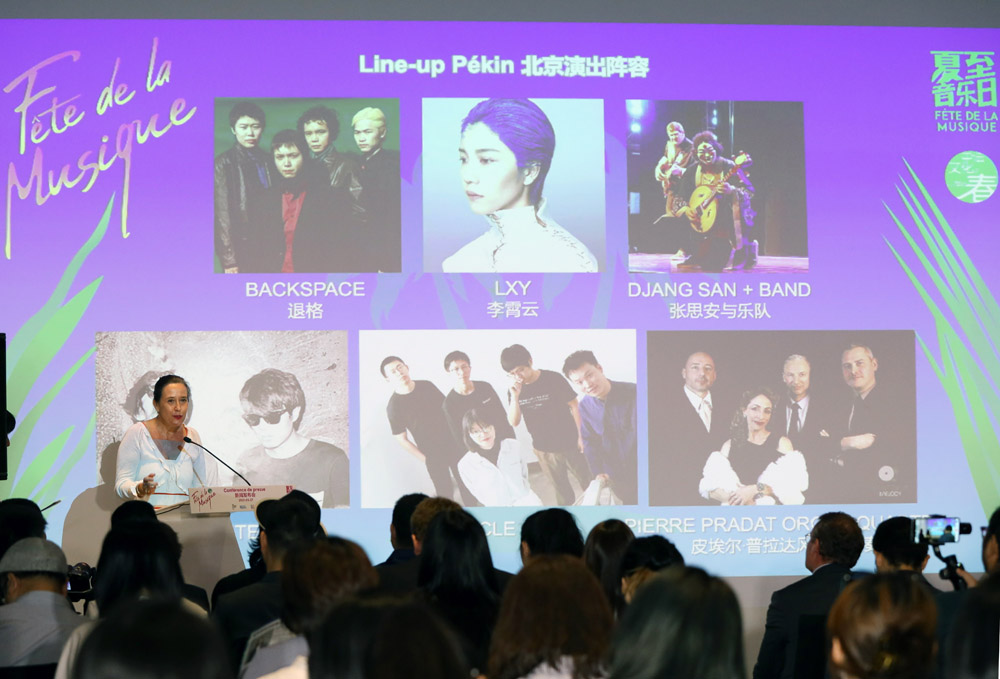 5月27日,法国驻华大使馆流行音乐与影视部文化专员谭凯丽(Tania Khali)在发布会上介绍夏至音乐日北京演出阵容。(图片来源:欧洲时报特约记者卞戈 摄)