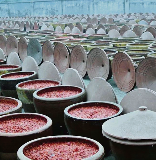 除了直接入菜调味,辣椒也是制作其他调味品的重要原料。被誉为“川菜之魂”的郫县豆瓣是中国顶尖调味料,原料为蚕豆和辣椒。它的香味醇厚,色泽鲜红油润,回味香甜。用二荆条或小米椒制成的四川泡椒辣中微酸,赋予鱼和肉酸辣开胃的滋味。