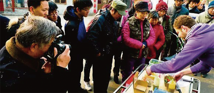 大米出生于英国,在一岁的时候随父母来到香港生活。他在香港生活了18年,会说些粤语,但是不会讲普通话。本科期间,他到伦敦的亚非学院(SOAS)学习中文。随后他揣着“学习中文和中餐烹饪”的目标来到北京,在胡同街头摆摊卖皮塔饼和鹰嘴豆泥。在他看来,街头摆摊最大的乐趣是和过路人的交流。