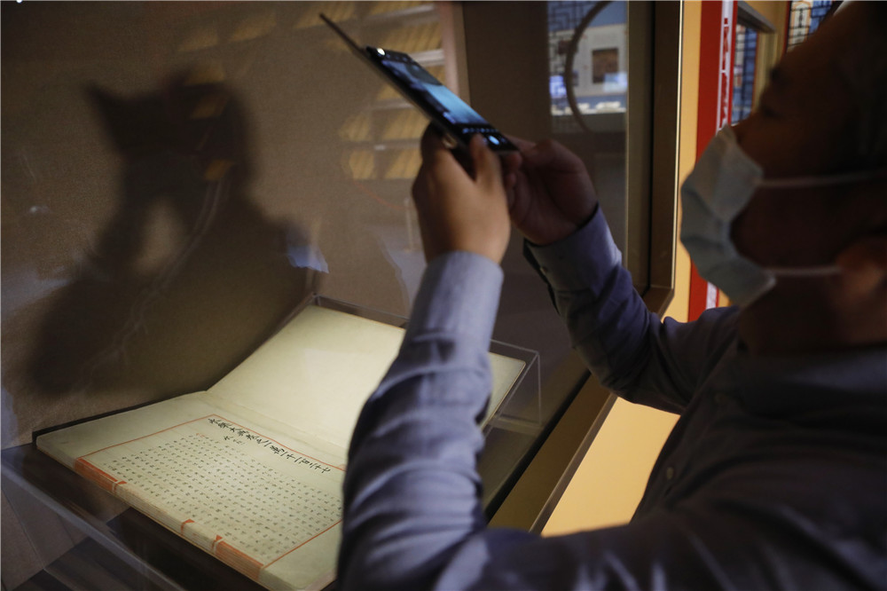 2021年6月1日,参观者在展厅现场拍摄展出的《永乐大典》嘉靖副本。